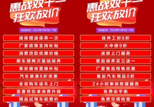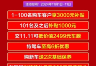 惠戰(zhàn)雙十一狂歡放價活動期間購車享補貼優(yōu)惠?保養(yǎng)套餐買三贈一更劃算活動火爆進行 錯過再等一年銷售熱線:0553-2875818售后熱線:0553-2873228